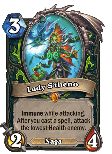 On top of these three cards, the upcoming patch will tackle one of the villains of the moment, Lady S'theno. Some patches ago, the nerf to Sinful Brand, addressed the problems with Spell Demon Hunter. However, the deck is back, with a similar non-interactive play pattern.