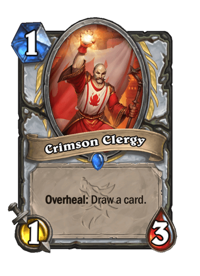 Hearthstone will touch one more card in this balance patch, but it isn’t a nerf or a buff. Crimsom Clerigy, the replacement for the retired Northshire Cleric, was included in the middle of the image, signaling a rework or just a balance change.