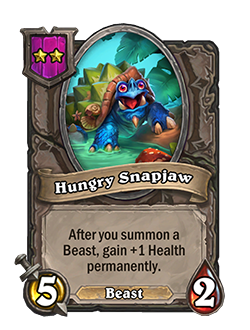 Recycling Wraith is down to Tier 3, boosting your chances of finding it in the minion pool. Next, the Elemental becomes subpar as a standalone minion, with its body now down to 4/2. Moreover, despite being a 5/2, Hungry Snapjaw is no Rabid Saurolisk.