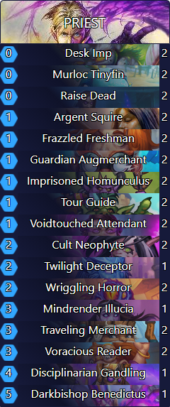 Voidtouched Attendant is what makes this deck playable– another cheap, well-statted minion that suddenly (or not so suddenly, like turn one) becomes a Savage Roar.