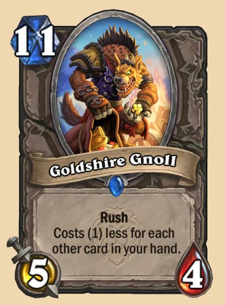 The other major outlier in Standard was Goldshire Gnoll. This was due to its synergy with cards such as Blazing Transmutation giving Shaman players access to ten cost minions on Turn Two. At Eleven Mana, this should slow that prospect down considerably. Additionally, Mine Warlock often used Goldshire Gnoll as an anti-aggro tool and will need to adapt to its updated cost moving forward.