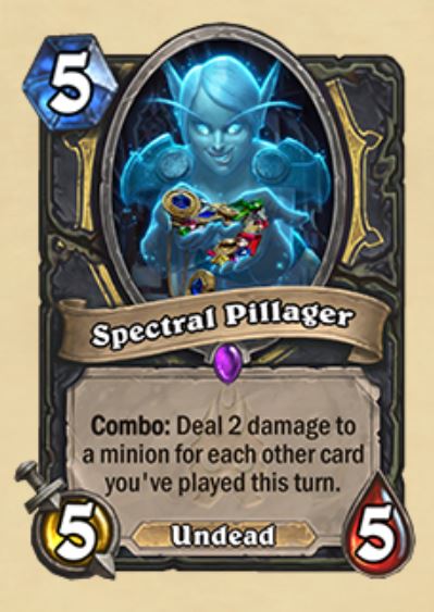 As any standard player who has been on the receiving end of Necrolord Draka’s sometimes fifteen atk daggers will tell you: Rogues can play a ton of cards in one turn. In Wild this is extreme enough to where some players were able to pull off One Turn Kills (OTK’s) as early as turn three using Spectral Pillager. Altering Pillager’s effect to only count every other card beforehand should serve to neuter this combo potential significantly.