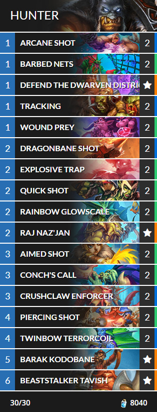 For Quest Hunter in Voyage to the Sunken City, it takes advantage of the new Barb Nets spell plus the Naga minion type. The Barb Nets card deals two damage to an enemy, and if a player has a Naga minion while holding this, then they’ll get to choose a second target. Meanwhile, playing Conch’s Call can draw in more spells and Naga minions.