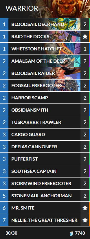 Does anyone else remember Patches’ old voiceline while climbing ladder back in the day? This deck doesn’t include him, but Pirates are back thanks to Questline Pirate Warrior. This particular deck takes advantage of the new and low-cost Pirates in Standard, allowing players to complete the Questline more smoothly. Nellie, the Great Thresher also gets to shine by allowing players to discover some sea-faring minions.