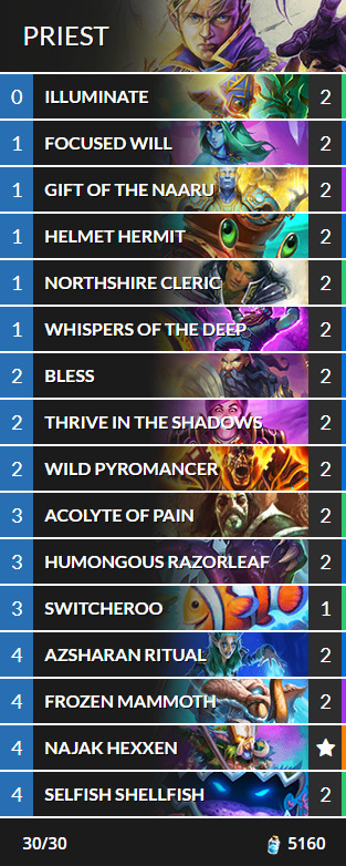 Those who favor spells, clearing, and copying minions can duke it out against others using Silence Priest. This deck also leverages the Dredge keyword, as Illuminate reduces the cost of spells. Meanwhile, Azsharan Ritual and Sunken Ritual can be combined for more Silence and Dredge action.