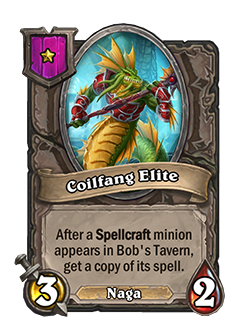 | Coilfang Elite | Lady Vashj | [Tavern Tier 2] 4 Attack, 3 Health | [Tavern Tier 1] 3 Attack, 2 Health |