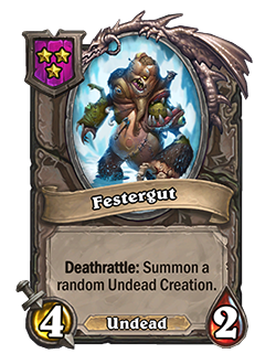 | Festergut | Professor Putricide | Ticking Abomination has been removed from the Festergut minion pool. (It is still in the minion pool for Professor Putricide’s hero power, Build-An-Undead). | |