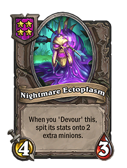 | Nightmare Ectoplasm | Mutanus the Devourer | [Tavern Tier3] 5 Attack, 4 Health | [Tavern Tier 4] 4 Attack, 3 Health |