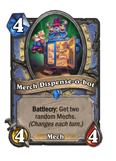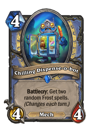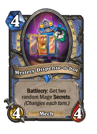 This 4 mana 4/4 Mech can either give you two random Coins, Frost Spells, Mechs, or Secrets. So pick your poison! Pray for an Explosive Sheep if you ever need AoE.