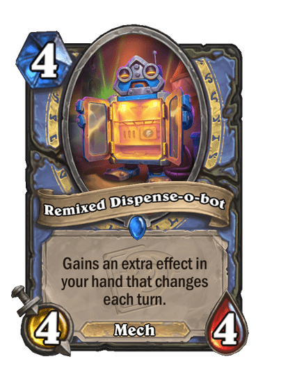 Remixed cards are a more chaotic take of Harmonic cards — or their Worgen precursors from the Witchwood expansion. Harmonics are predictable due to swapping between the same two versions each turn. This makes planning ahead easy. Meanwhile, Remixed swaps between four effects in a random fashion. Therefore, you might have to make some awkward plays and maybe float some mana in order to use a certain effect before it vanishes. Pre-emptive cleave on the Warrior weapon comes to mind.