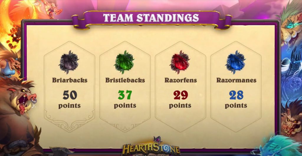 Briarback were crowned champions of the Battle of the Boars tournament after collecting 50 points by the end of it all. Bristlebacks come in second with a total of 37 points with Razorfens and Razormanes scoring 29 and 28 points, respectively.