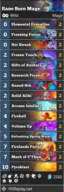 Spell synergies are everything in this Tavern Brawl. Combining 0-cost spells with big payoffs and card draw is the way to go. I’d recommend practicing your APM and making sure you are not susceptible to disconnects before entering the tavern.