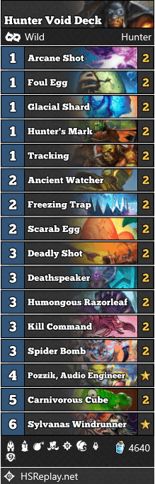 The following Hearthstone decks are examples of what can work in The Void Singularity Tavern Brawl. If you don't have any specific card, you can fill in the Void with a similar one. Deathrattle and Battlcry minions are the best, but some spells can also work, the Freezing Trap and Hunter's Mark are a prove of that