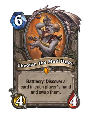 Other high-priority targets include: Necrolord Draka, Astalor Bloodsworn and Jace Darkweaver as examples of some of the win-conditions Theotar allows you to prevent. Its biggest weakness when including it in a deck, is its weak statline and lack of defensive utility in the early stages of a game. When coupled with an early E.T.C., and the option to pick a different band member, its utility skyrockets.