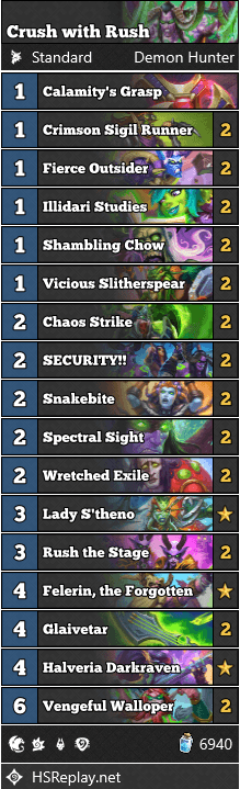 Crush with Rush Demon Hunter deck code: AAECAea5AwT7vwSkkgWPpQXn9QUNtp8Es6AEtKAEiLIEiJIFj5IFlJIFjaUFpMMF8MMF9MMF6/UF4fgFAAA=