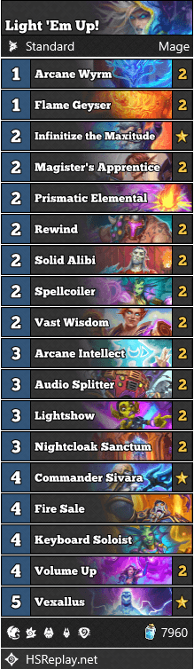 Light 'Em Up! Mage deck code: AAECAf0EBqneBKaTBaqYBeCsBdH4BbGeBgz8ngTcuQTK3gSEkwXKkwWQlgWrmAWmwwXgwwXoxQXQ+AWyngYAAA==