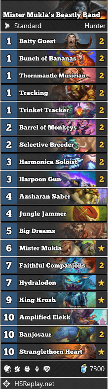 Mister Mukla's Beastly Band Hunter deck code: AAECAR8I4Z8EwLkE57kExMcF58oF6soFiNEF0/gFC+rpA6mfBIPIBMHjBKqkBa6kBdqsBebKBajRBeT1BdL4BQAA