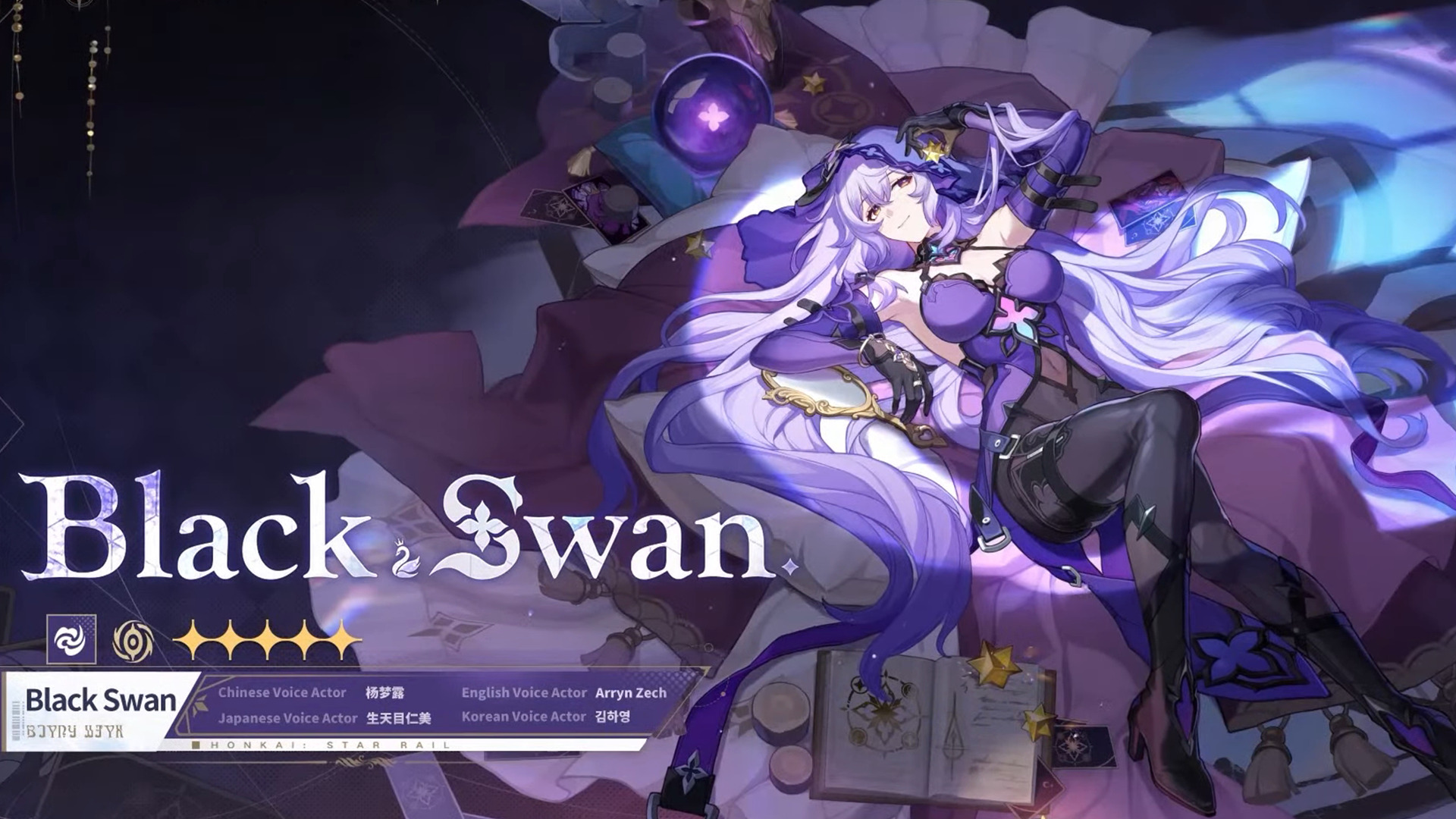 Black Swan is a mysterious diviner and a Memokeeper from the enigmatic Garden of Recollection, an organization dedicated to Fuli, the Aeon of Remembrance. She is intrigued by the memories of others, and after listening to their tales, uses her tarot cards to divine their future.
