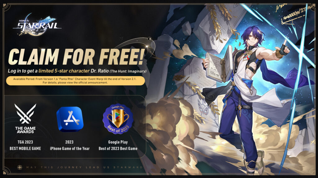 The free Dr Ratio is a thank you from MiHoYo for winning several awards; Best Mobile Game (TGA 2023), iPhone Game of the Year and Best of 2023 Best Game (Google Play).