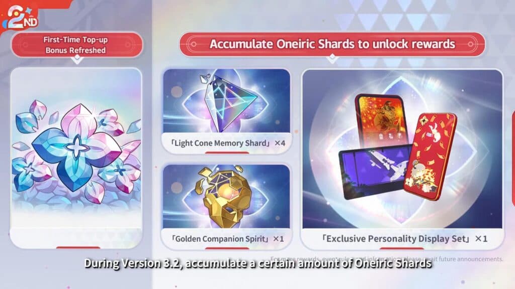 First is buying Oneiric Shards, meaning shelling out real money. Once you accumulate a certain amount of Oneiric Shards, you'll receive a Golden Companion Spirit on top of it.