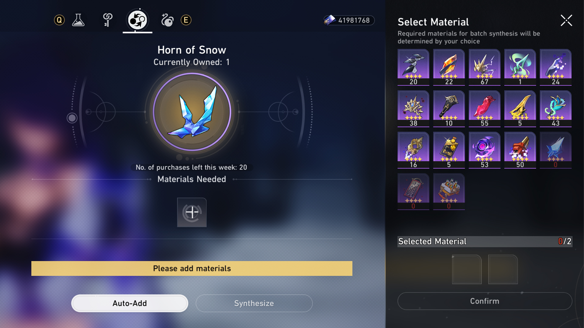 Using the Omni Synthesizer has a limit of 20 exchanges for the Chordal Mirage per week. It requires two of a different Ascension material for one Chordal Mirage.