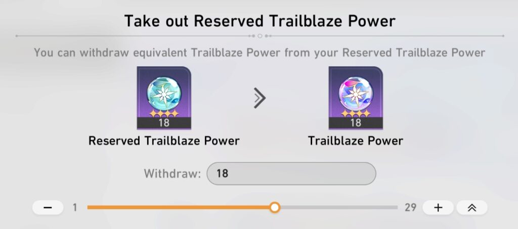- Click on the Reserved Trailblaze Power icon and select “Withdraw”
