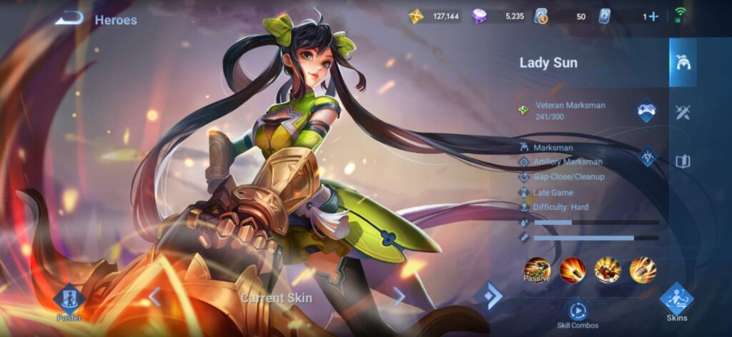 Author’s Note: Lady Sun uses her low-cooldown Skill 1 to deal damage while also kiting her enemies. Use it effectively to position yourself better during teamfight, and use your passive to reduce its cooldown.
