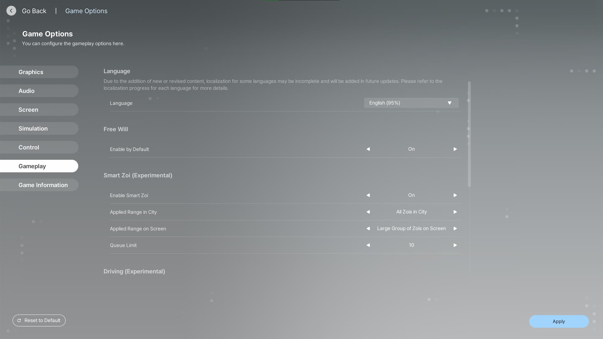And lastly, we touch on the best settings for the Gameplay category in inZOI. These determine how your Zoi moves about on its own, if enabled, and other aspects that are experimental for the time being.