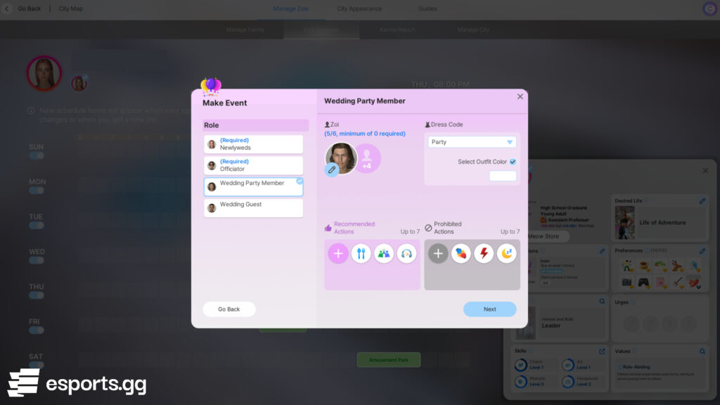 In the next phase, you’ll get the chance to prepare for the wedding, choose your guests, and decide what activities they are allowed or not allowed to do. After everything is arranged you’ll need to choose if you want to live with your part in your house or theirs. You can keep all their assets as well.