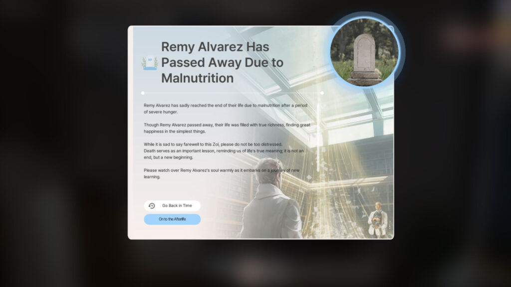 Just like being notified about a family member, you will receive information when someone from your relationship panel passes away. Recently, a woman named Katlyn died, and the Zoi received a text message notifying them of this tragic news. Since the Zoi did not have a close relationship with Katlyn, the news did not affect their mood.