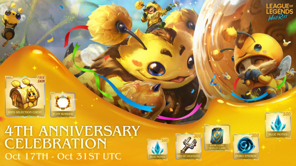 During the anniversary event – which is happening between Oct. 17th and Oct. 31st – you’ll receive a free. When you log in to the game, you’ll have to choose between a Nunu & Bellump or a Beemo skin in the Bees Selection Chest.