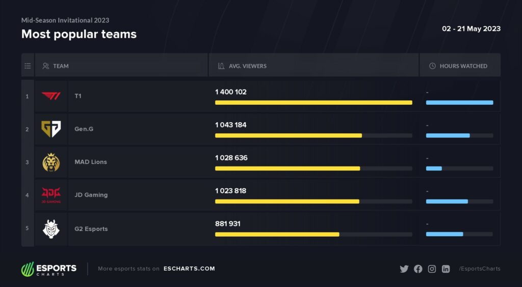 Here are the top five most-watched teams at MSI 2023:
