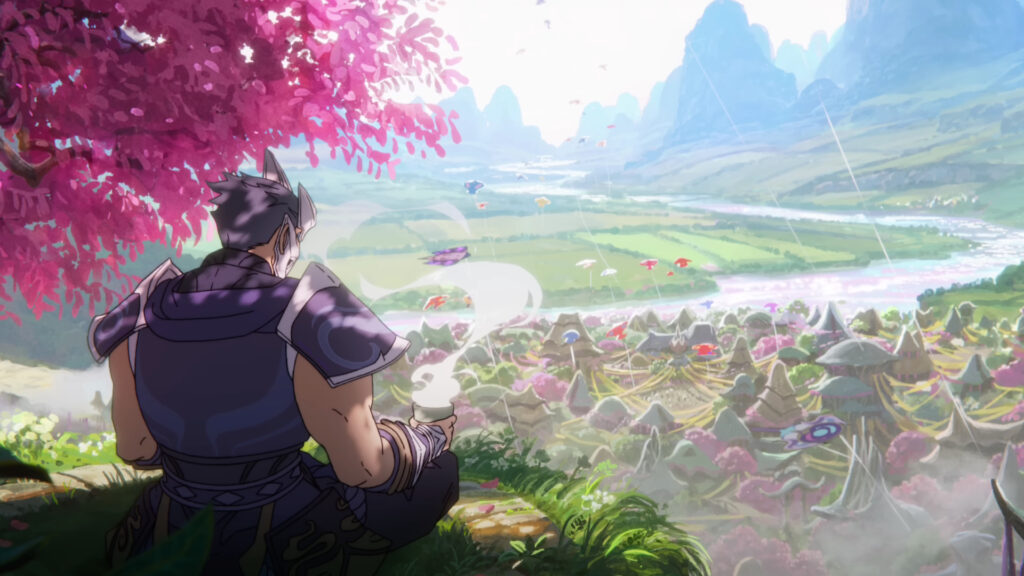 Although it’s unclear whether Shen will receive a Spirit Blossom skin, he appears for a few seconds in the new League of Legends cinematic. We see him watching over the city with a cup of hot tea in his hand.