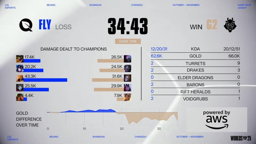 G2 Esports vs FlyQuest in Worlds 2025 Swiss
