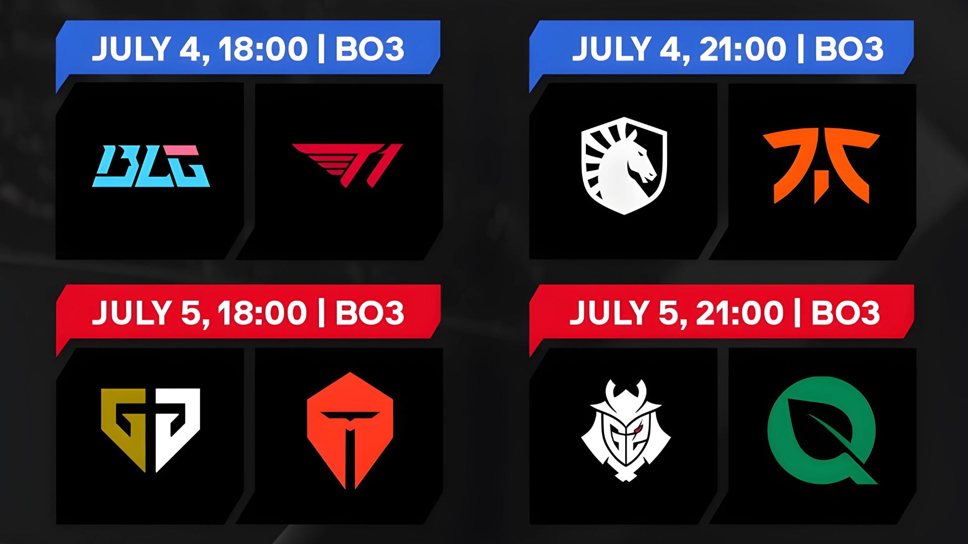 | Quarter-Final, G2 vs FlyQuest | Friday, July 5 | 2 p.m. | 11 a.m. |