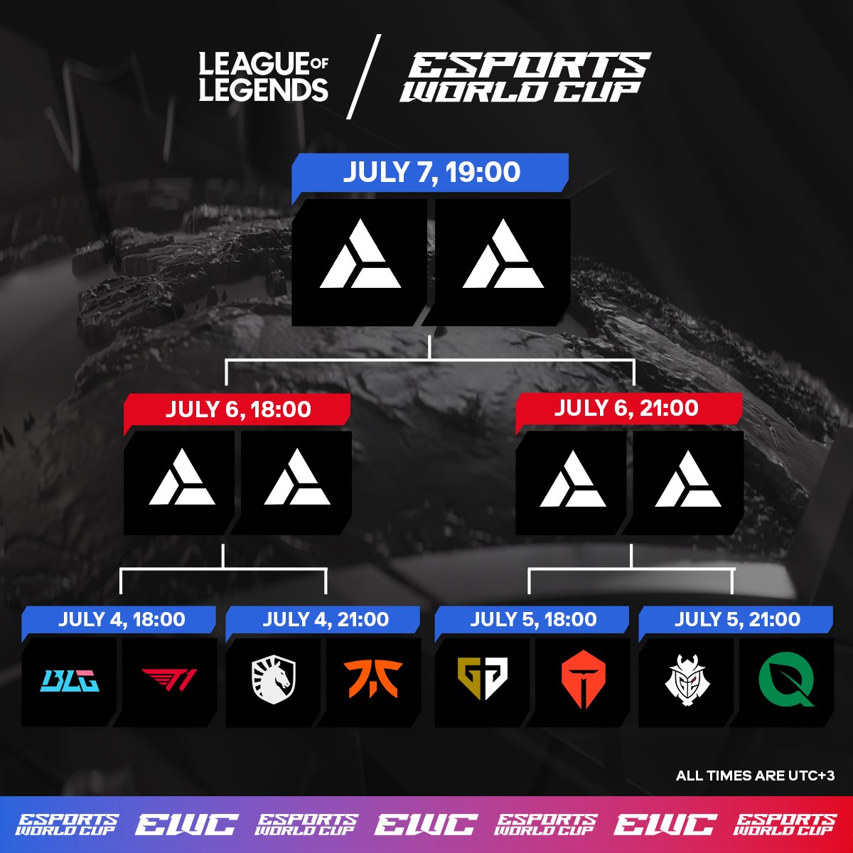 The LoL tournament at the Esports World Cup happens between June 4 and June 7. First, the eight invited teams play in the quarter-finals: two per day. Then, we will be able to enjoy the semi-final matches. The final will determine the champion.