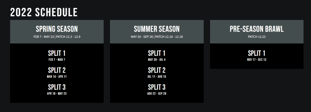 The new matchmaking schedule will be very similar to the LCS. It will have Summer and Spring seasons with three splits per season.