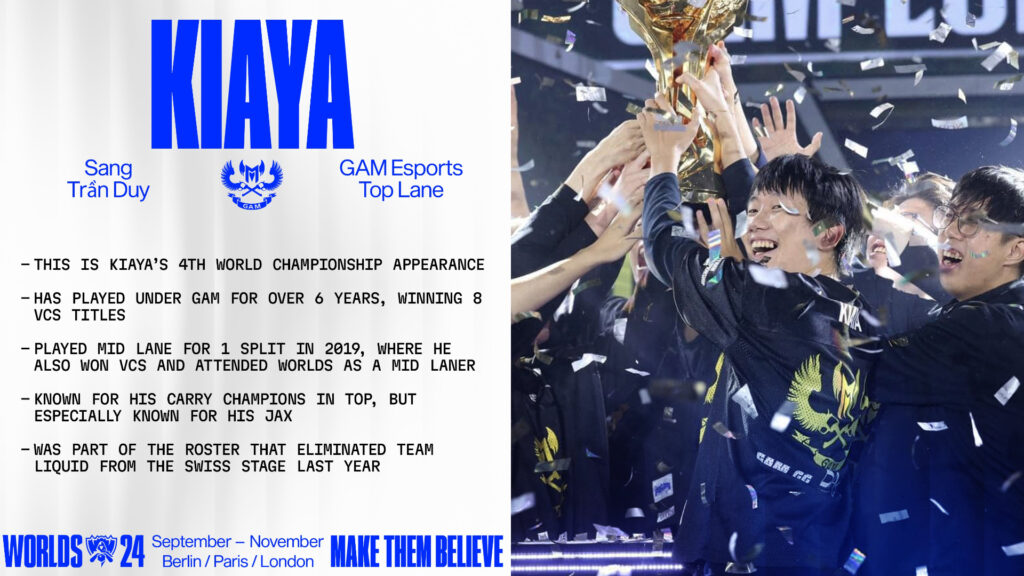 GAM Esports is a Vietnamese team with 10 years of experience in the competitive LoL scene. With a current roaster of only Vietnamese players, the team had a 2024 that they will never forget. Being the winners of the VCS gave them some energy and confidence to jump on this Worlds 2024 event.