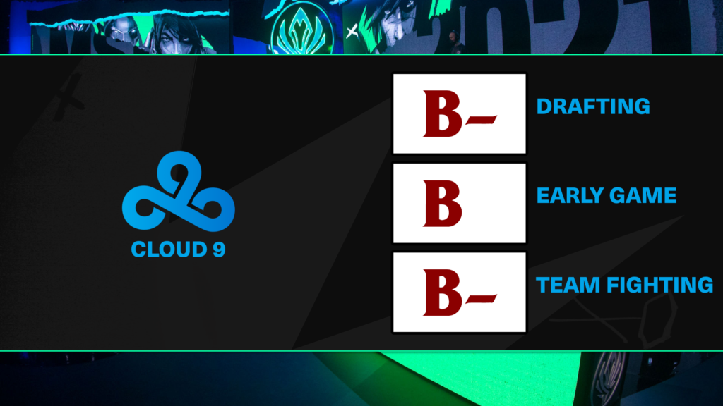 Team Fighting: “One of the bright spots for C9 at the 2021 Mid-Season Invitational was their impressive team fighting capabilities. Specifically in their victories over Royal Never Give Up and Damwon KIA, Cloud9 proved they do have the tools to hang with the best. Fudge in particular garnered many new fans with his world class flanks on Lee Sin.” – Marn