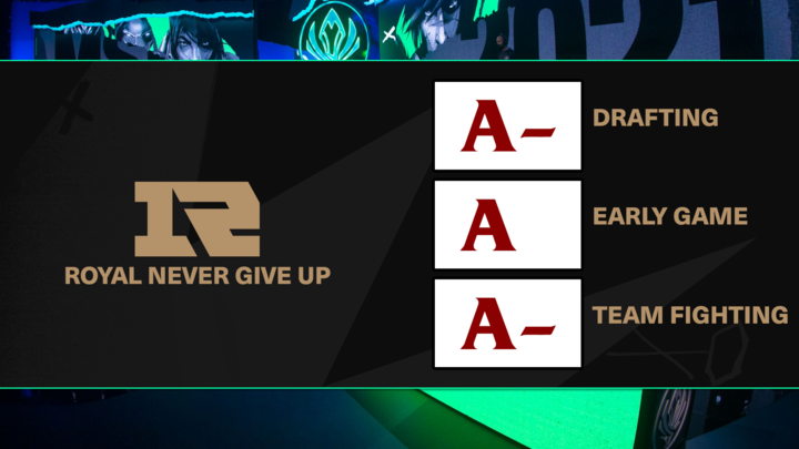 Drafting: “A relatively standard draft approach, but extremely effective as it worked to their strengths. Their top lane consistently had prio and demolished opponents, while the bot lane always had pressure due to Kai’Sa and Nautilus (picked eight times).” – Ezekiel