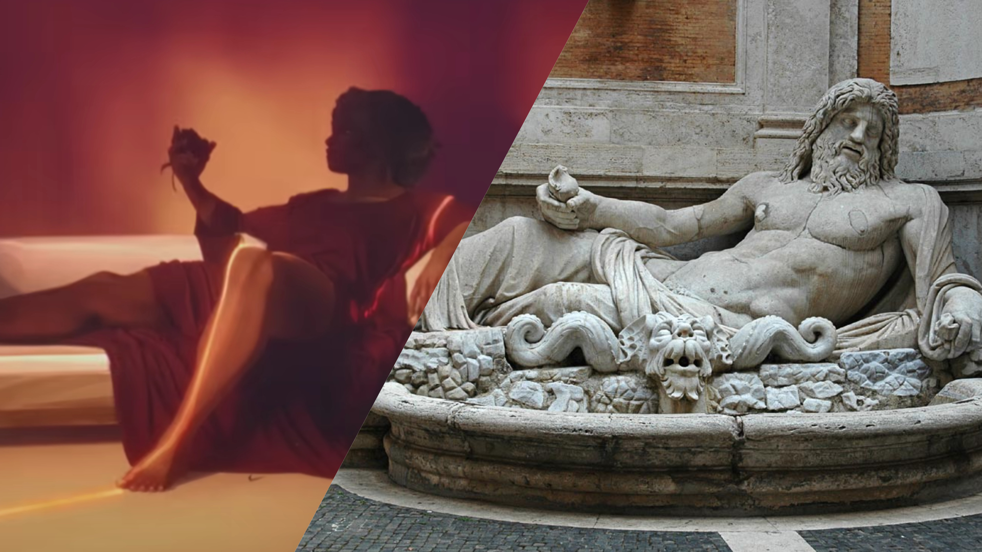 Since I loved history classes back in the day, something caught my attention during the opening and that was the Ambessa pose. She reminded me of a Roman god. On the right side, we see Marforio, a Roman god and their pose is very identical: lying down, holding something in their right hand, and resting their left arm. All this can be a reference to Ambessa’s presence not only as a strong leader but also as a god. The power she emerges is huge in this scene.