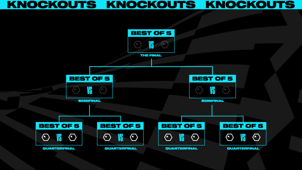 - Knockouts will feature 8 teams that qualify from the Swiss Stage, who will be drawn into a single elimination bracket based on their placement from the Swiss Stage. This bracket, which includes Quarterfinals, Semifinals, and Finals, will determine the 2023 World Champion.
