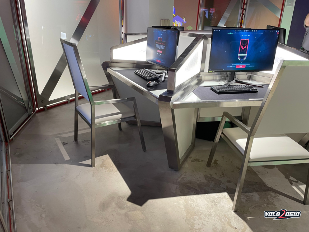 The Riot Games Lounge contains a wide array of League of Legends and Valorant-themed furnishings, along with different interactive features for its guests. It has life-sized character models, including Ahri and Jett, along with smaller-sized figures of Evelynn, Miss Fortune, Braum, Lux, and a few others.