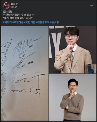 This post had three photos: Faker’s signature, him doing his signature “shh” pose, followed by the candidate mimicking said pose. In the caption of the post, he also used Faker’s famous “I’ll take responsibility! It’s over, it’s over!” quote. The first hashtag is #페이커 — simply #Faker.