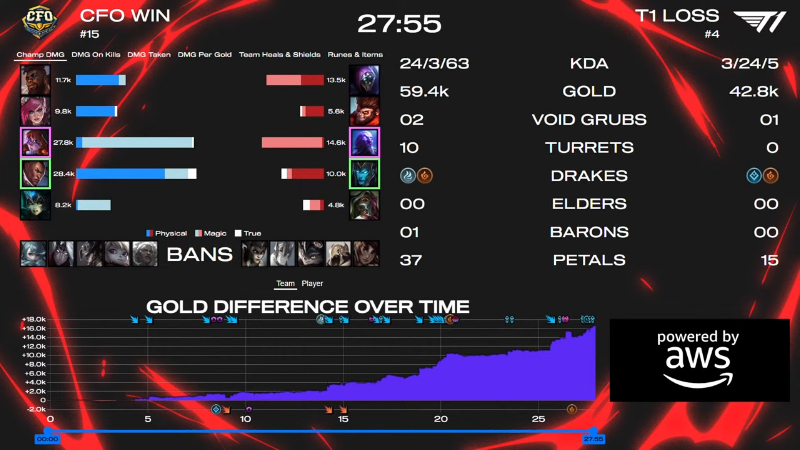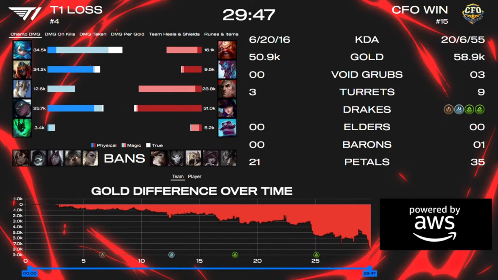 CFO could finish the series here, but it did not happen. Even if T1 had a big lead throughout Game 4, they started losing the initiative drastically at around 27 minutes.