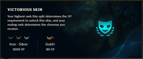 Gone are the days of having to reach Gold to earn the Victorious skin. Now, every rank will have the chance to earn the exclusive League of Legends skin. The way it will now work is players will have to earn Split Points and have an honor level above 2. For Iron, Bronze, or Silver players, they will have to earn 1600 Split Points. If you are Gold or above, the points are significantly lower at 80.