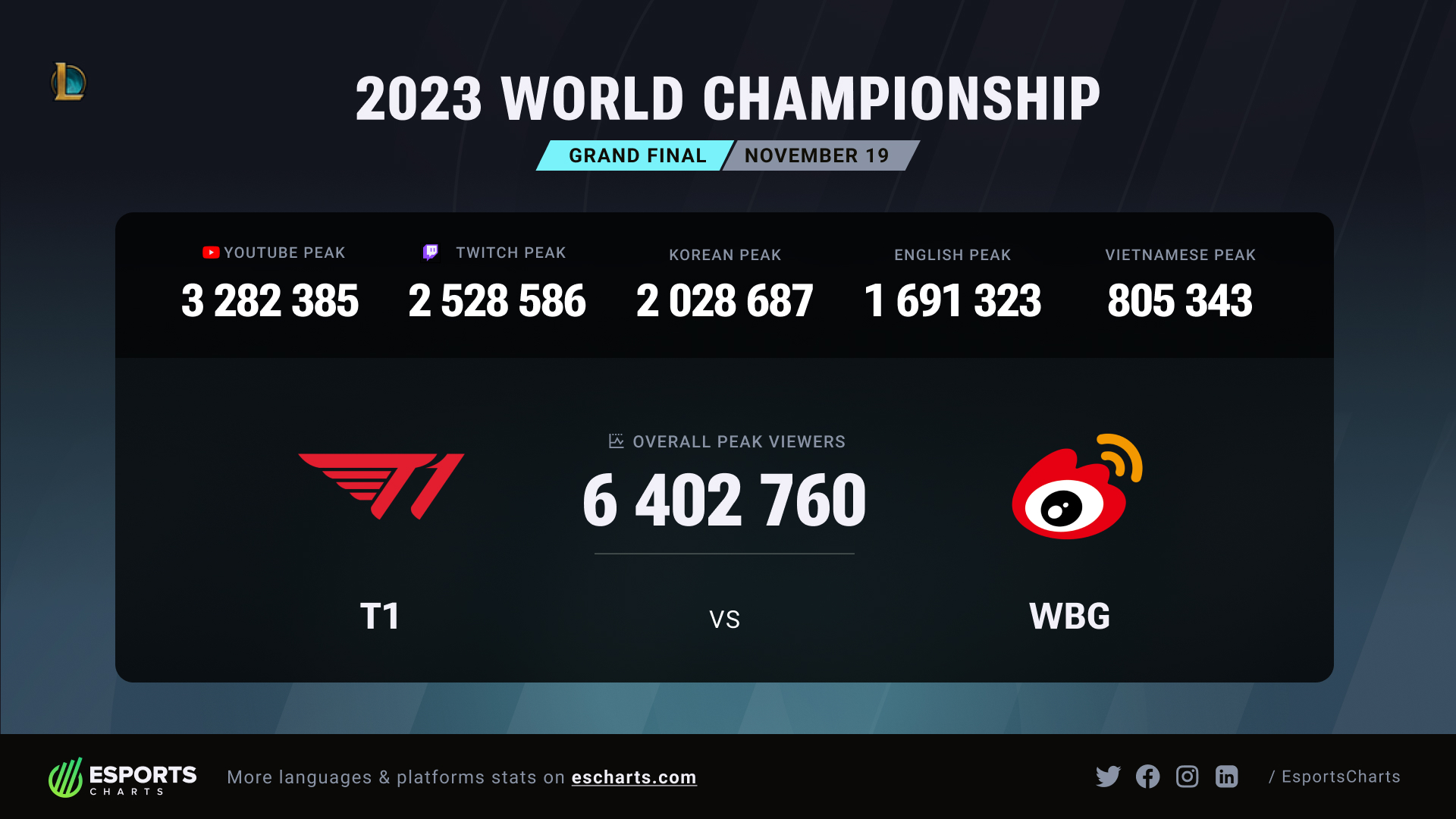 - Worlds 2023 — 6.4 million Peak Viewers;
