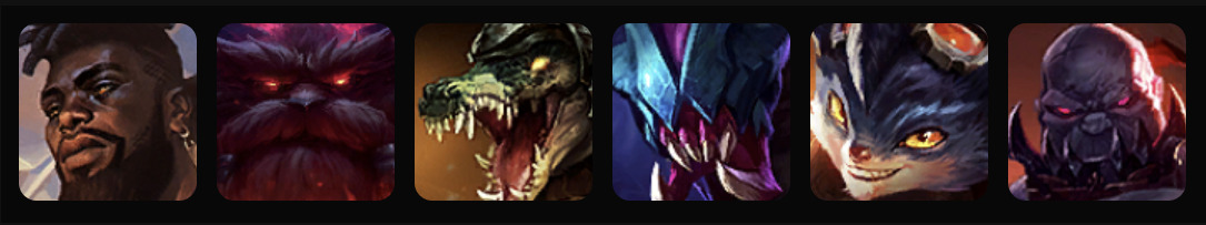 K’Sante, Ornn, Renekton, Rek’Sai, Rumble, Sion