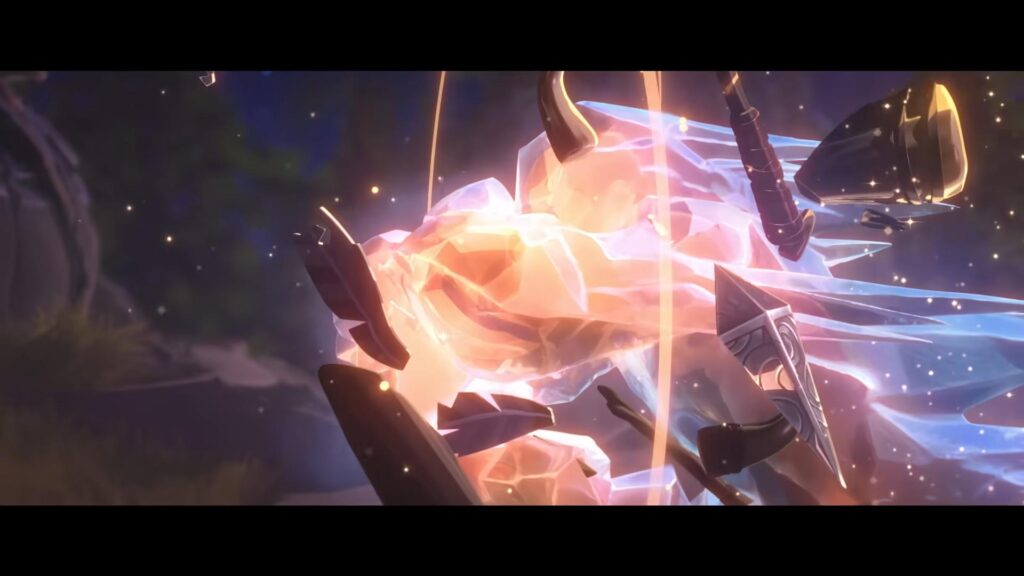 Another accurate recreation appears with Rasmus “Caps” Winther’s Sylas and Park “Ruler” Jae-hyuk’s Ashe. 28 minutes in on the second game of Worlds 2020 quarterfinals, Ruler hits Caps with the Enchanted Crystal Arrow. Immediately after, he goes golden with the Zhonya’s Hourglass to avoid the Nidalee Spear — a moment also captured in the Sacrifice Worlds 2025 music video.