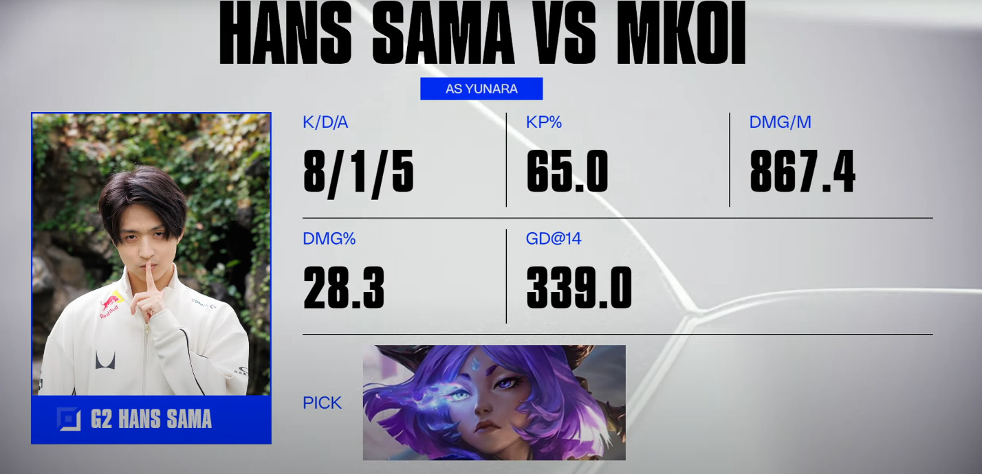 A battle of the LEC would be our next stop, with MKOI taking on G2 Esports. After a scary early game saw Javier “Elyoya” Prades Batalla’s Wukong getting ahead, G2 finally began to wake up. Once G2 had control, MKOI were in disarray, and the game quickly got away from them. Steven “Hans Sama” Liv’s Yunara ripped through MKOI to secure the win for G2 and take them up to 1-1.